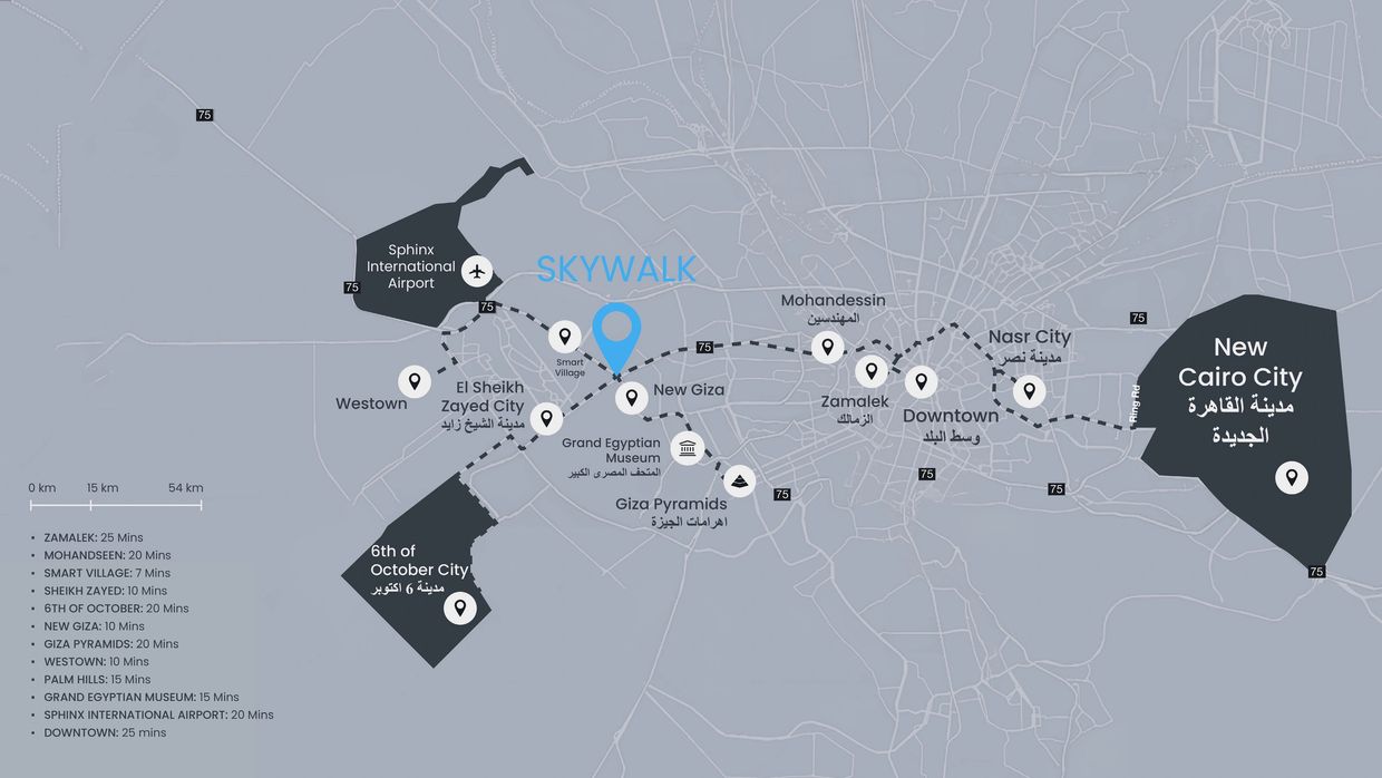 SKYWALK is easily accessible from all areas of Cairo West due to its great location at the intersection of Cairo Alexandria Desert Road and Mehwar 26th of July Corridor.